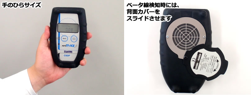 ※背面カバーを開いて、アルファ線、ベータ線を検知する際はビニール袋などはかぶせないでください。